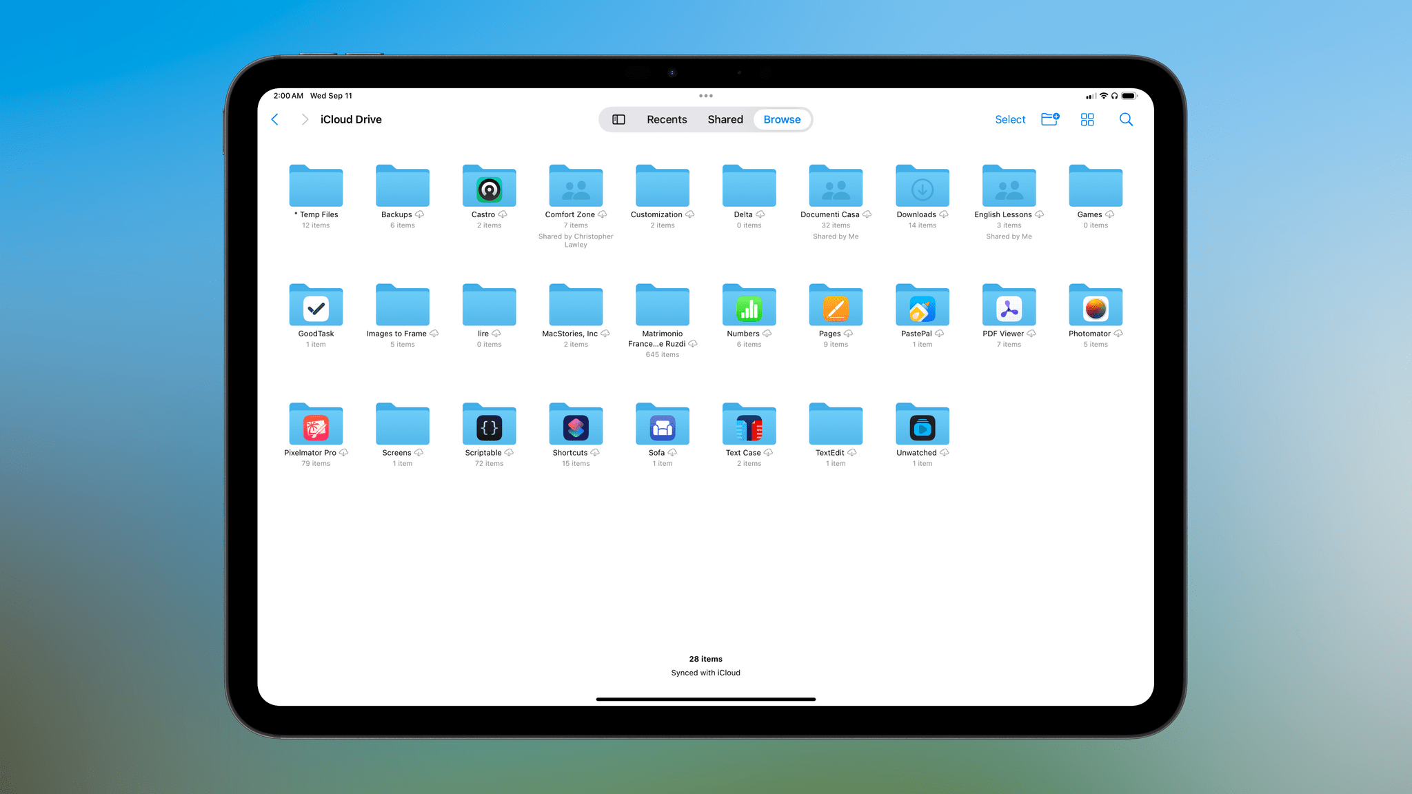 I mean, don’t get me wrong: the new document browser looks nice. But it’s like buying nice sheets for a bedroom that has a mold problem. Common sense would suggest you take care of the insalubrious air first. And yet, for all the file management issues of iPadOS, Apple thought now would be a great time to let developers add mascots to their document browsers.